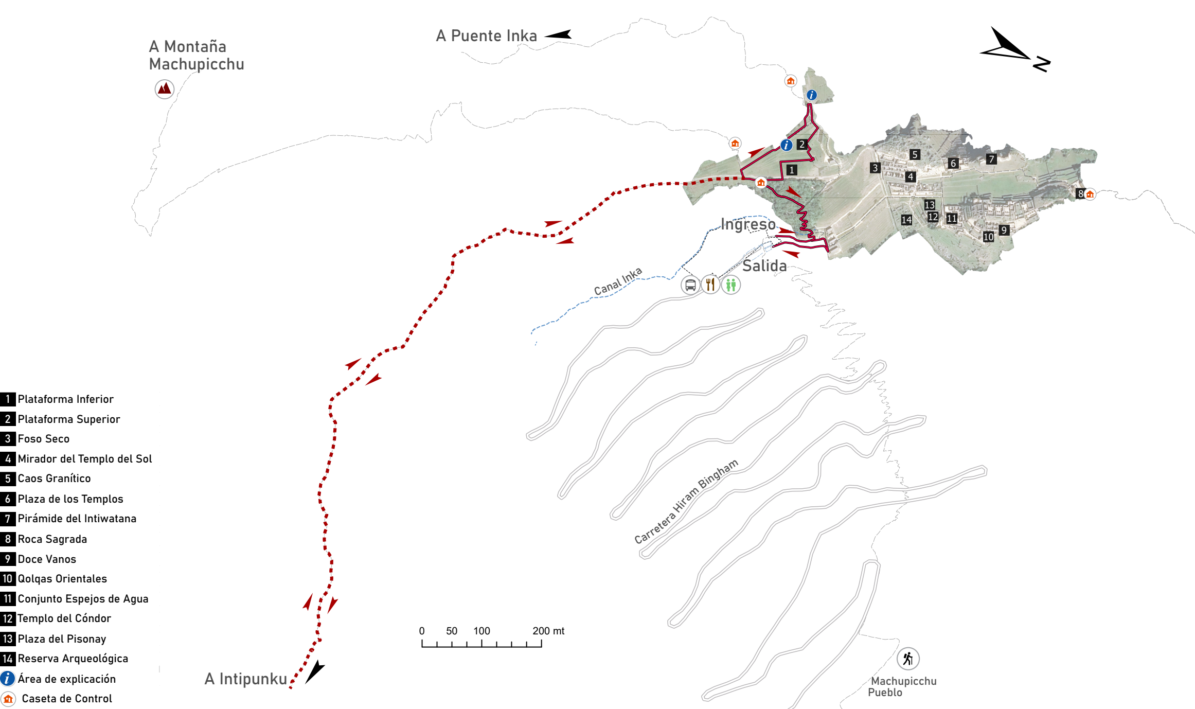 Például a Machu Picchu Ruta Clásica jegy egész évben érvényes (szezonon kívül és főszezonban egyaránt), és lehetővé teszi a Machu Picchu meglátogatását egy meghatározott napon és időpontban. A főbejáraton való belépést követően a látogatás a 2A útvonalon történik, amely legfeljebb 2 óra 30 percig tarthat.